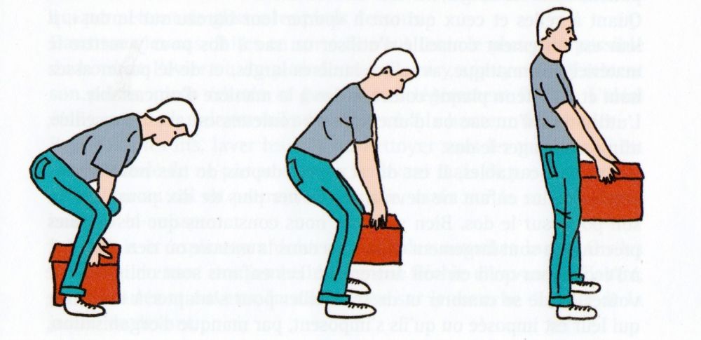 Pour prendre un objet par terre, il est impératif de plier les genoux et de fléchir les hanches pour s'accroupir en inclinant le buste vers l'avant.